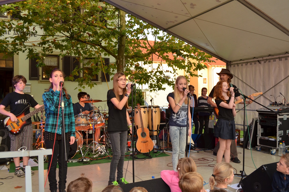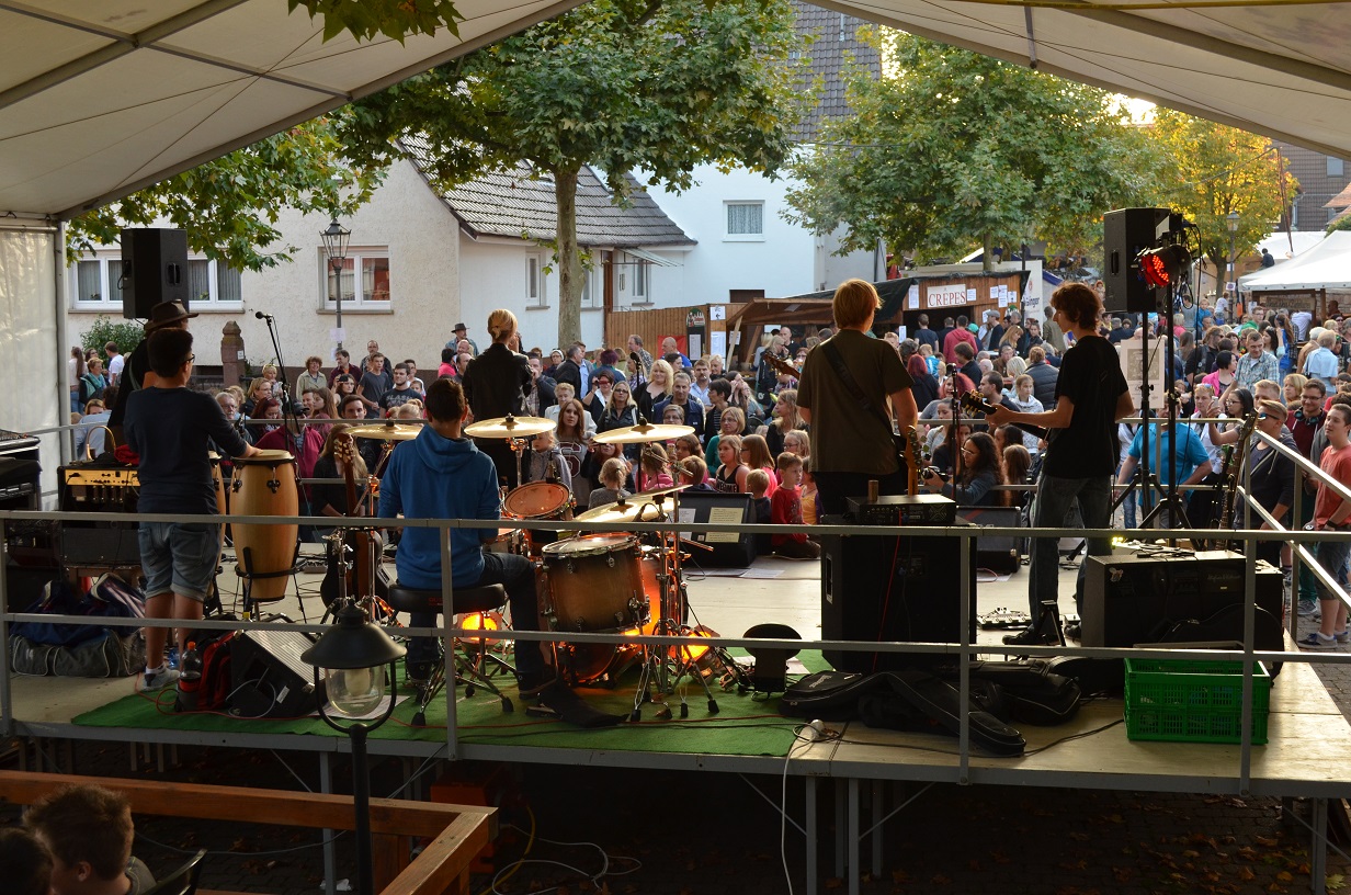 Merian-Schule und Gemeinde hatten zum Rock-Festival anlässlich des Epfenbacher Markttags eingeladen und Musiklehrer Thorsten Diehm ein abwechslungsreiches Musikprogramm von Rock, Pop, Country und Rock `n` Roll bis Irish Folk gestaltet. Nach den regenreichen Festivals der letzten beiden Jahre profitierte man dieses Mal vom goldenen Herbstwetter.