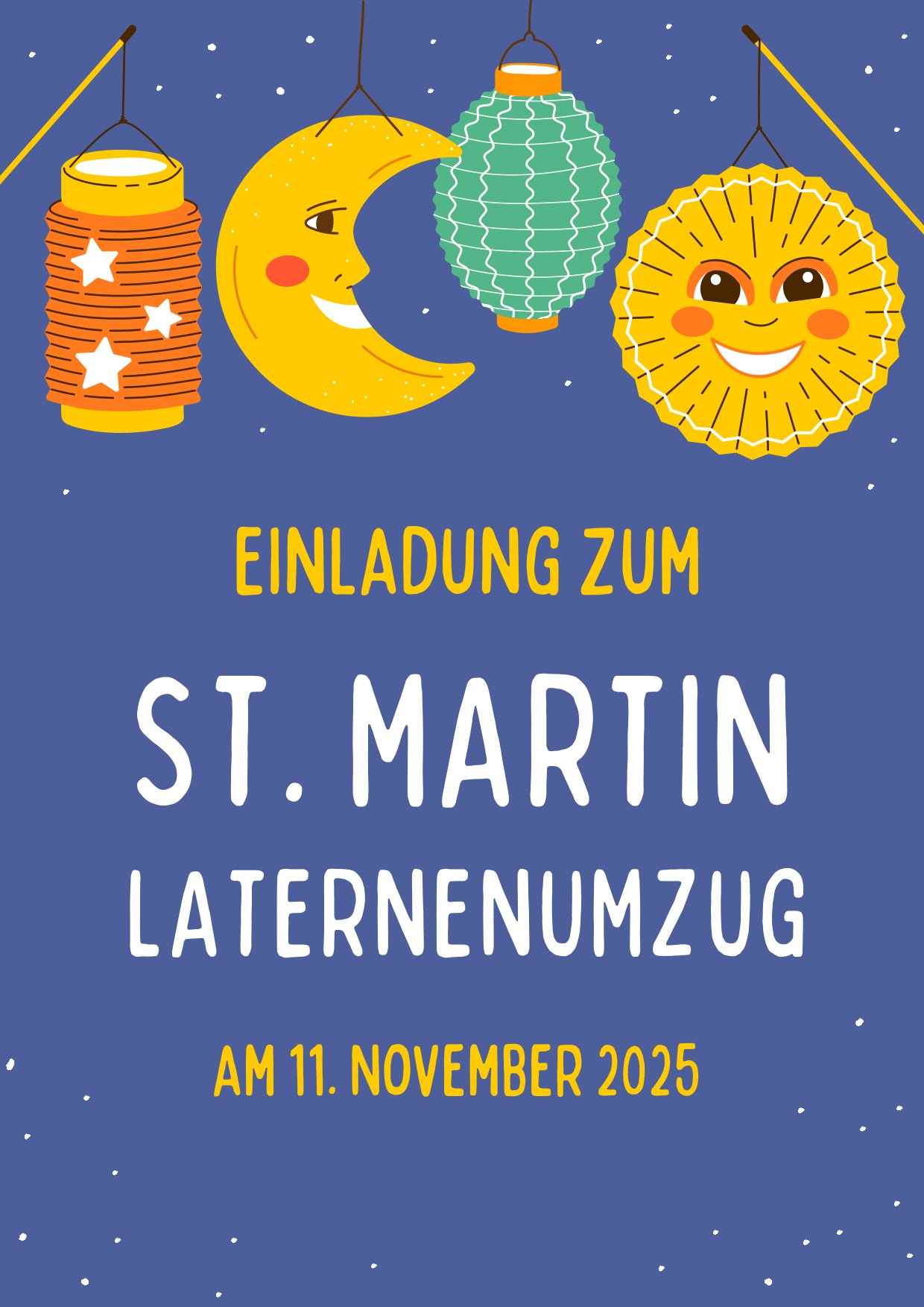 Alle Kinder sind dieses Jahr wieder herzlich zum Martinsumzug am Dienstag, dem 11.11.2025, eingeladen. Abmarsch ist gegen 18.00 Uhr an der katholischen Kirche nach dem Gottesdienst (Beginn: 17.30 Uhr) und endet im Schulhof der Merian-Schule. Der Musikverein wird den Zug begleiten. Die Fackelträger werden durch die Freiwillige Feuerwehr gestellt und dienen ausschließlich dem Leuchten der Musiker.